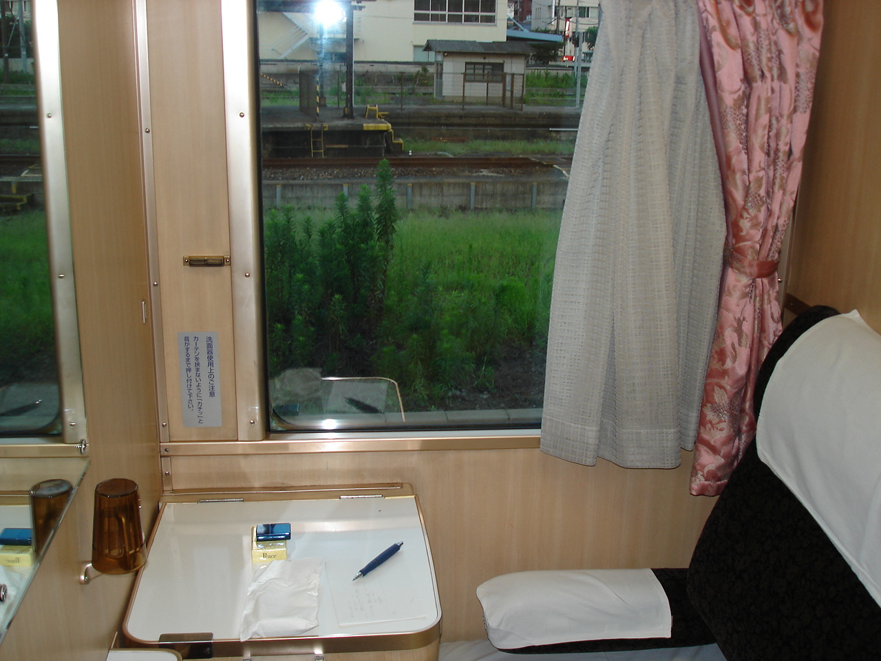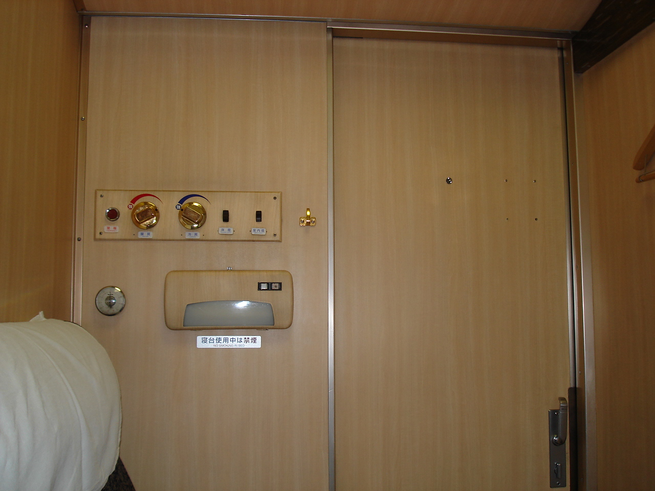個室に荷物を置いてひと息ついていると、いきなりドアが開く。 検札に来た車掌さんだった。 小倉までの車内補充券を見せて、東京までの乗車券をお願いする。 「これでよく売りましたねえ」などとよく意味のわからないことを言いつつ、切符を作るために一度去っていった。 「下関で乗務員が変わるので、間に合わなければ西日本の人に任せるから」と言われた乗車券は、門司停車中に無事届けられた。