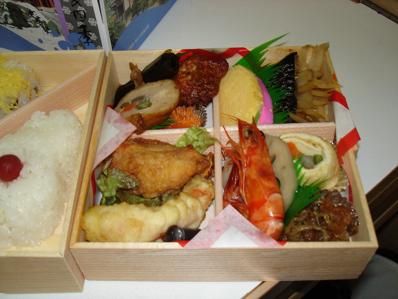 下関到着前から徐々に前方への移動を開始、5号車からホームに降りて早足で売店に向かい、1個だけ残っていたお弁当「早鞆の四季」(\1,100)を買うことができた。
