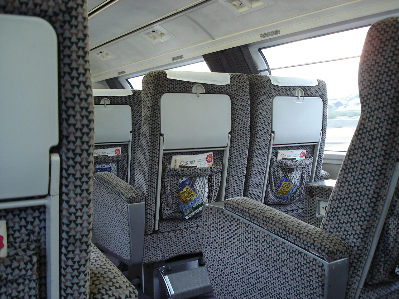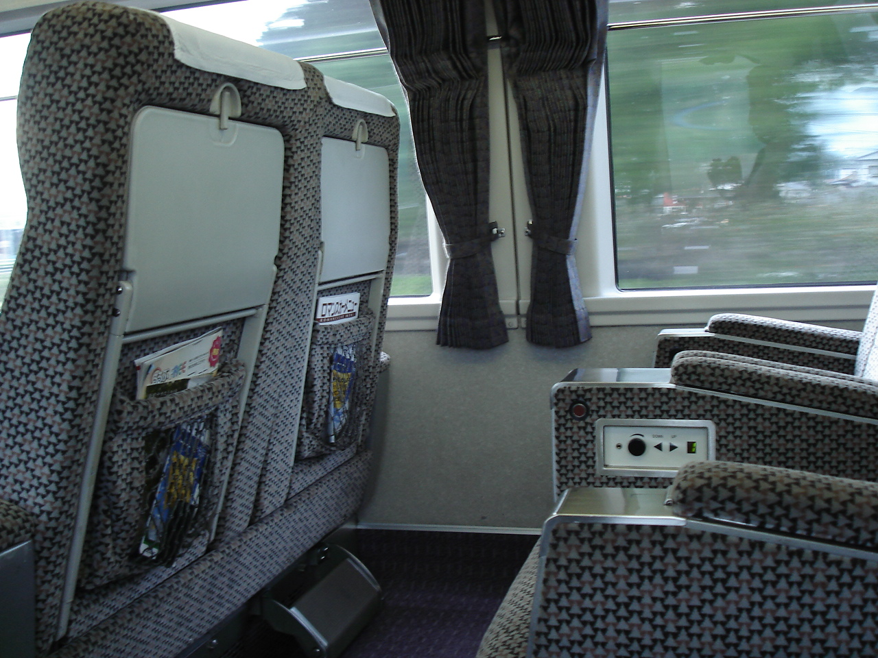 グリーン席は2階にある。 出発してすぐ紙おしぼりが配られる。 お客は数名しか乗っていなくて、たまにわまってくる車販さんも手持ち無沙汰気味。 小田急線内はのろのろ運転で、特急らしくない。 松田からJR御殿場線に乗り入れ、景色はよくなるが乗り心地は悪くなる。