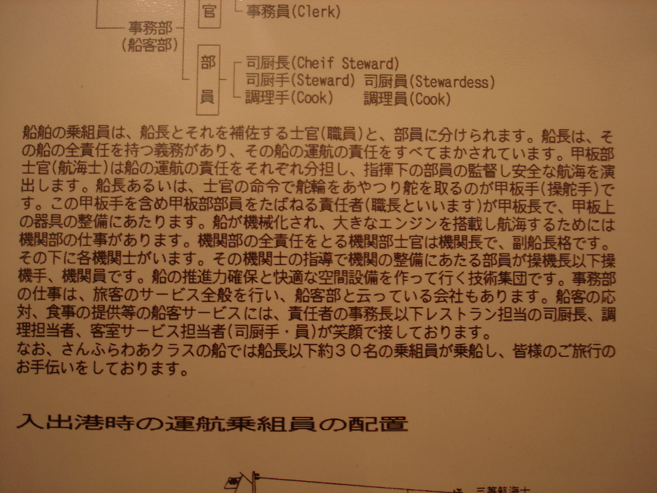 案内の冊子に、船の乗組員の組織とか船に関する言葉の説明が載っていた。