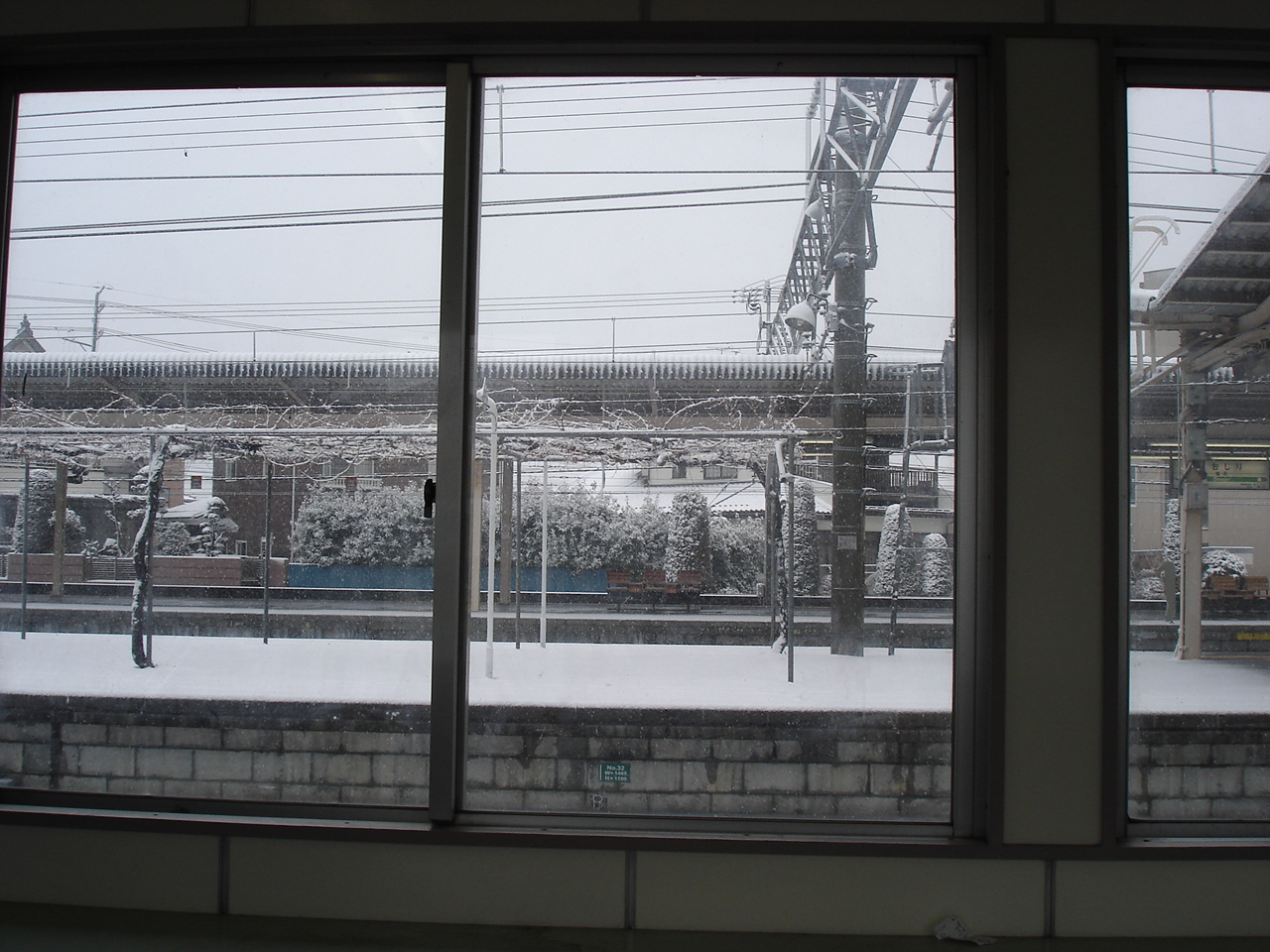 塩尻は雪。 ホームの喫煙コーナーが名古屋寄りの屋根のない場所にあったので、白くなりながら一服。 寒いので、待合室で列車の到着を待つ。