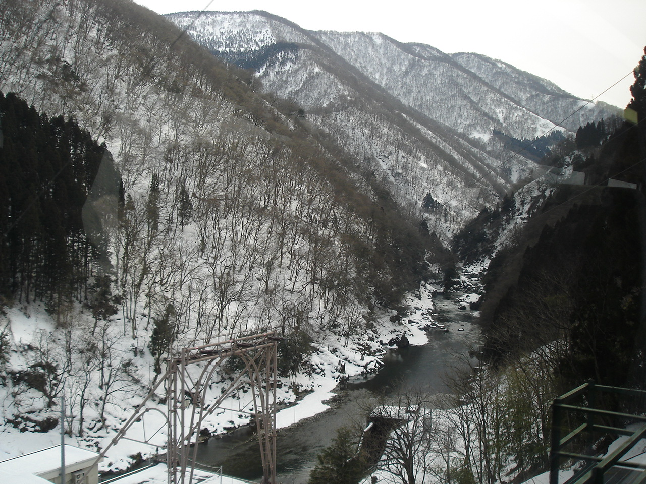 ふたたび電鉄富山に戻る。 宇奈月温泉まで往復する時間があることを確認して、自動券売機で乗車券と特急券を購入。 特急うなづき3号は、元西武レッドアローの車両だけど、2両編成のワンマン運転。 季節によっては座席指定になるようだけれど、今日は全車自由席。 半分ほど席が埋まった状態で発車した。 立山を見ながら走る。 上市でスイッチバックして向きが変わるけれど、。 宇奈月温泉が近くなると、雪が積もっていた。 駅の周りをぶらぶら。 黒部に向かうトロッコ列車は、まだお休み中。