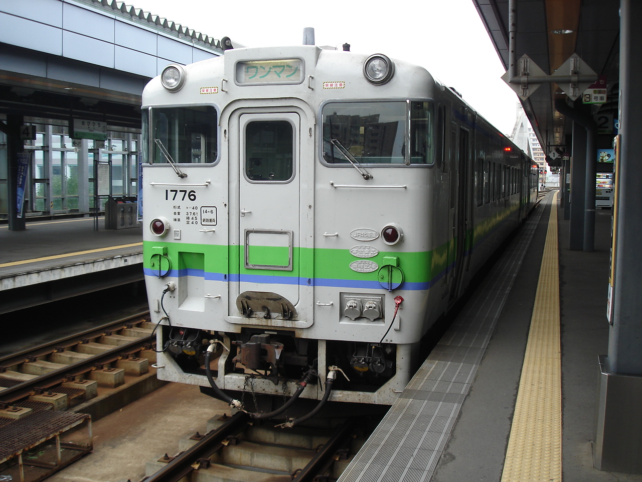 3時頃目が覚めたけれど二度寝。 6時20分に起きてシャワーを浴び、7時過ぎチェックアウト。 薄曇りでひんやりしているけど、寒くはない。 札幌駅ホームにある立ち食いそばの天ぷらそば(\400)で朝食。 後払いの代金を払い忘れて立ち去りそうになる。 喫煙コーナーで一服した後、キオスクでお昼用のサンドイッチ(\250)を買っておく。 今日は普通列車に乗り続ける予定なので、途中で食料を調達できないかもしれない。