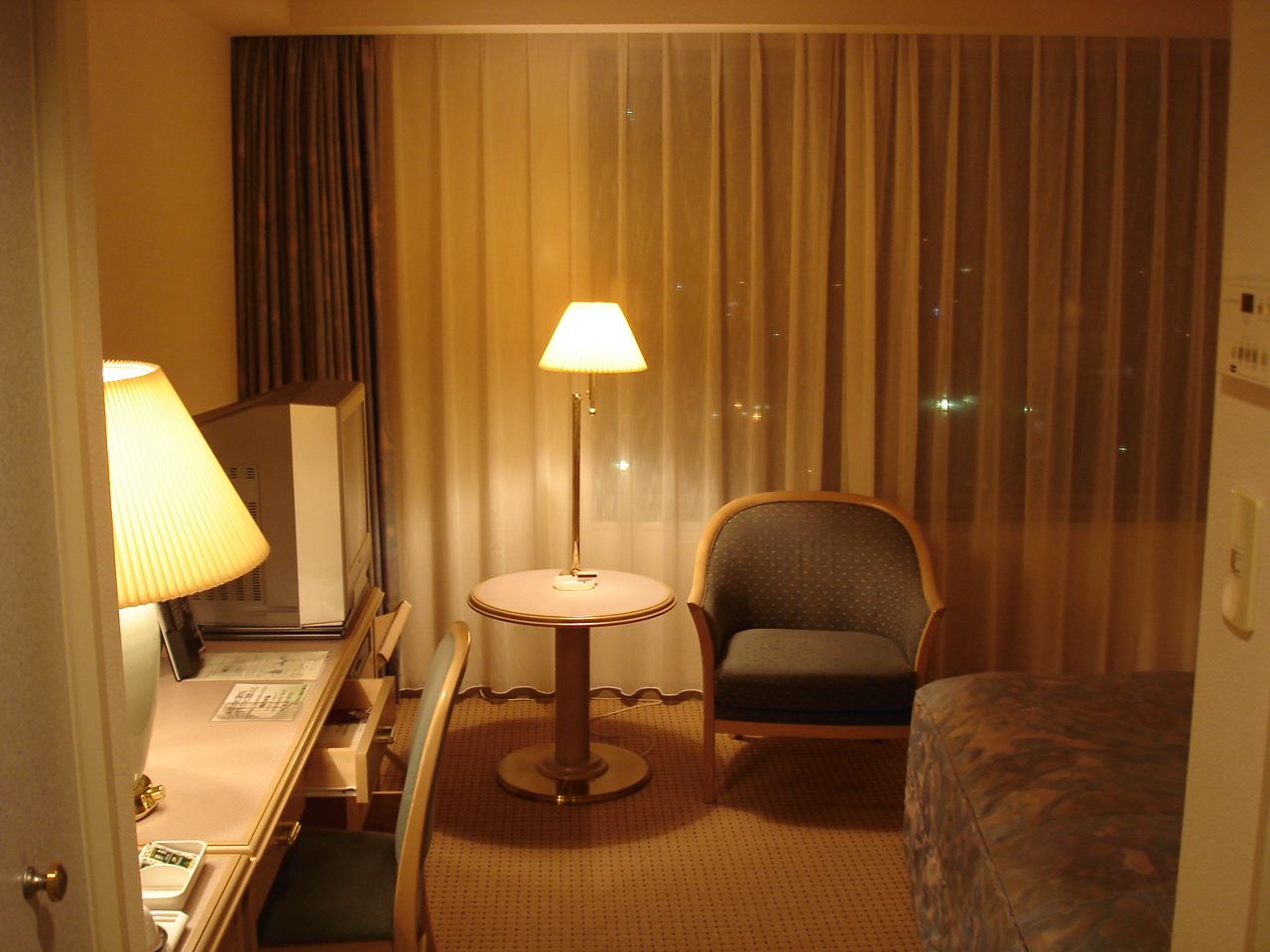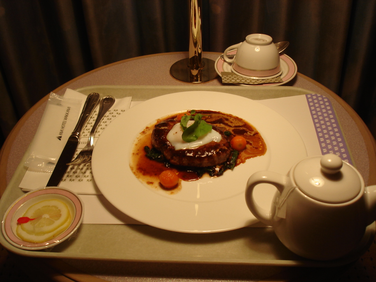 駅から少し歩いて、北防波堤ドームの近くにあるホテルにチェックイン。 917号室は街側の部屋。 自動販売機は1階にあり、ビール500ml缶はスーパードライ(\400)だけだった。 出歩くのも面倒なので、ルームサービスで「ハンバーグステーキ温泉卵風沿え赤ワイン風味デミグラスソース」なる長い名称のハンバーグ(\1,600)とポットサービスの紅茶(\650)を注文して、夜食とする。 22時頃就寝。