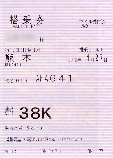 | 阿蘇くまもと空港 | 10:35頃 着(延着) | |