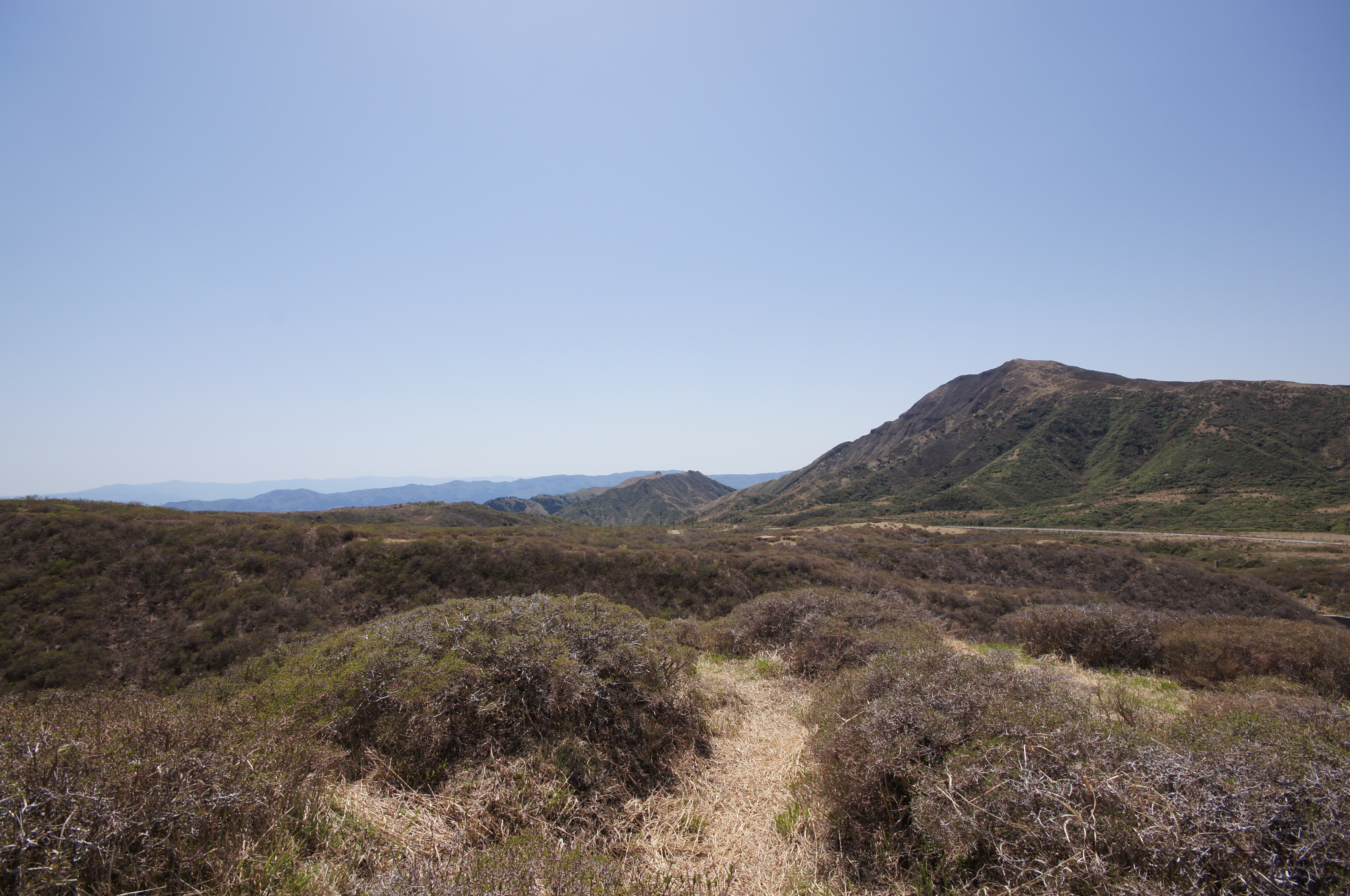 1時間ほどうろうろして草千里の眺めに満足した頃、いつもズボンのポケットに入れている財布がないことに気づきます。 往復の航空券とホテルは事前にカード決済しており、現金もいつものクセで財布以外にも分散させているので旅程には影響ありませんが、記憶をたどって歩いた道を探します。 牧草地で落としたとしたら見つける可能性はかなり低く、あきらめて気分を切り替え旅行を楽しむことにします。