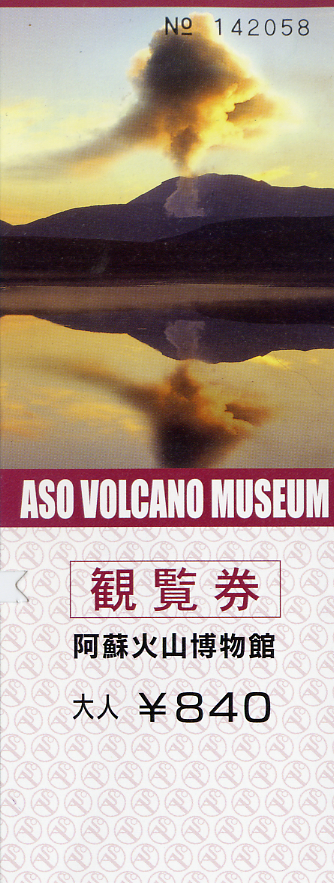 阿蘇火山博物館(\840)に入館すると、ちょうど映画がはじまるところでした。 ヘリコプターで空撮した阿蘇山の風景をメインにしたパノラマ映画で、空撮の映像がゆらゆら揺れているのがリアルです。 ぐるっとひとまわりしているとバスの時間が近づいてきたので、コインロッカーの荷物を受け出すと、財布がありました! 無意識のうちに荷物といっしょに閉じ込めていたみたいです。 博物館前の喫煙コーナーで歓喜の一服。
